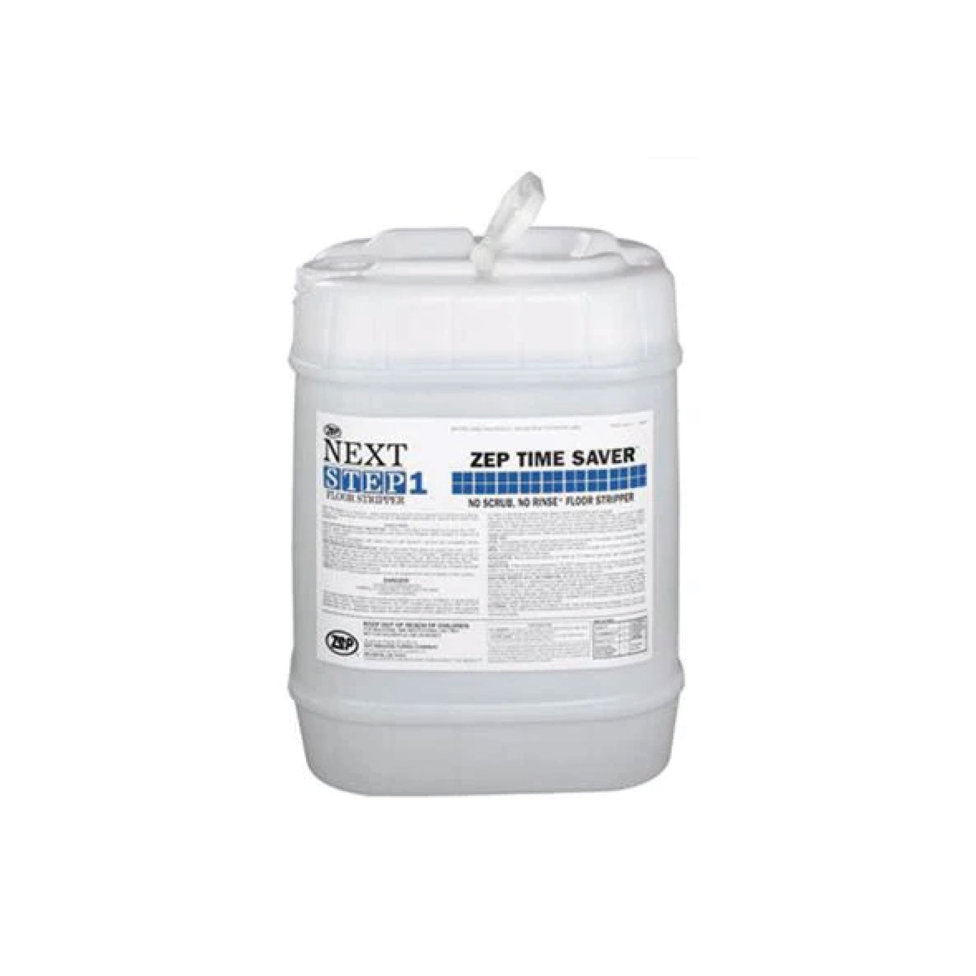 Zep Time Saver is a fast-acting stripper that dissolves multiple coats of floor finish without scrubbing. Residue is easily mopped or vacuumed, eliminating the need for rinsing. No strong ammonia or solvent odors. No neutralizing needed. Low-foam, free-rinsing characteristics assure no residue to interfere with subsequent finish applications.